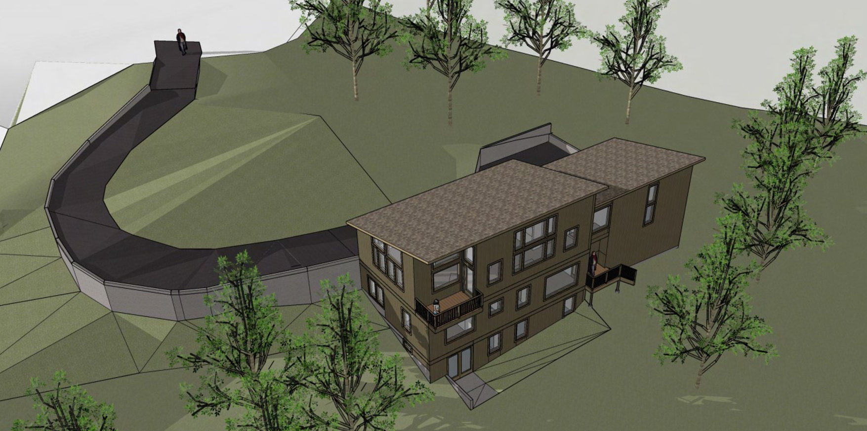 Terracing down a steep forest grade, this home follows the natural topography. Residents enter from the high-road side and meander down through social spaces to the quiet, private bedrooms below, which offer direct access to the forest floor and hiking trails.