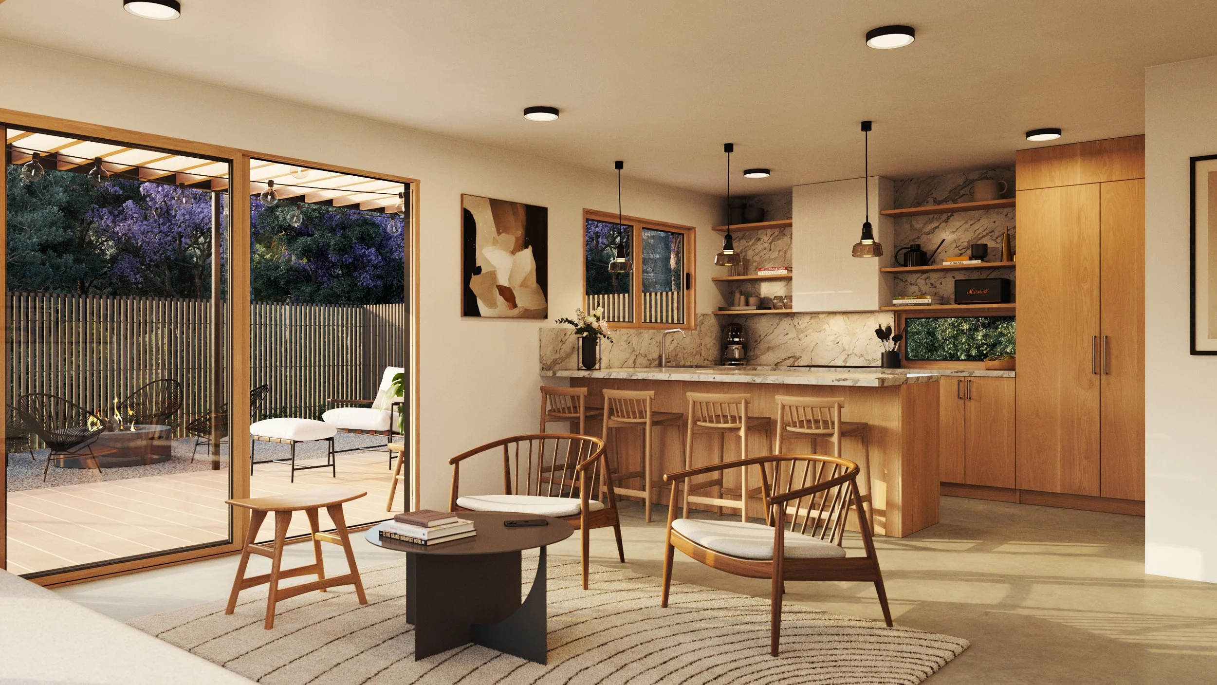 Designed as a "home away from home," this mid-sized accessory dwelling unit offers a functional starting point for young families or roommates to plant roots in the city. The layout balances a compact footprint with thoughtful spatial planning, providing a private, detached residence that functions with the autonomy of a full-scale house.
